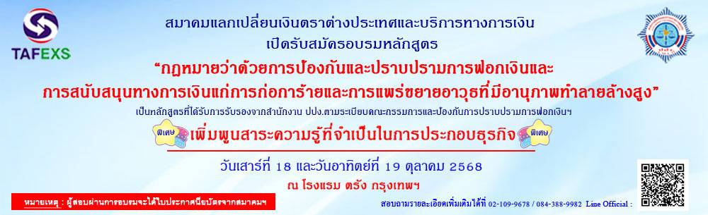 สมาคมแลกเปลี่ยนเงินตราต่างประเทศและบริการทางการเงิน (TAFEXS) โดย…