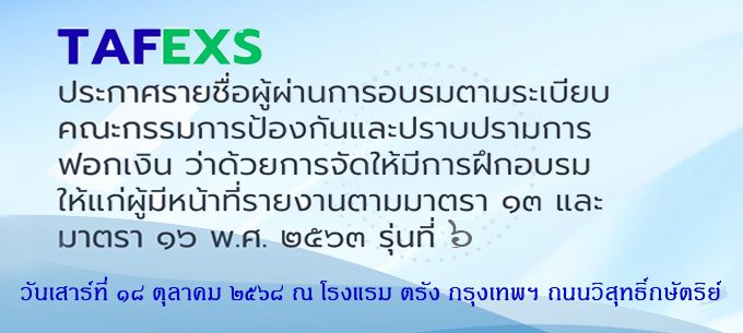 TAFEX ประกาศรายชื่อผู้ผ่านการฝึกอบรมตามระเบียบตามระเบียบฯ