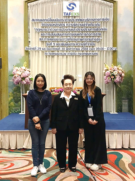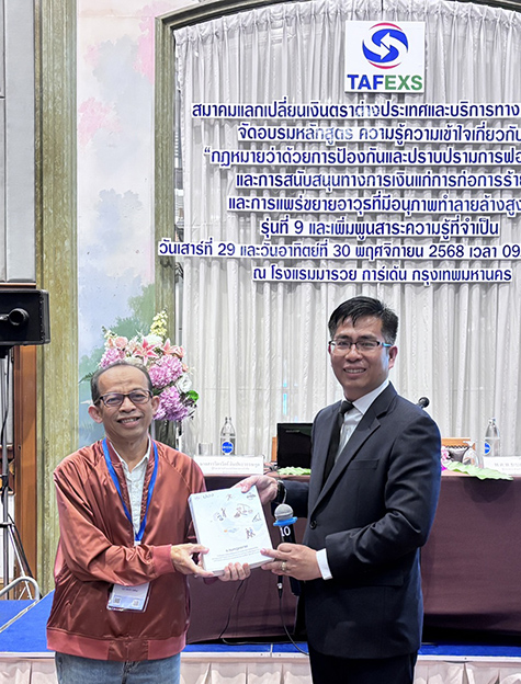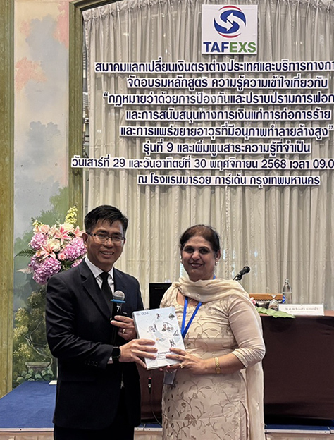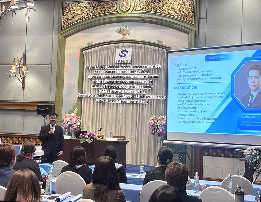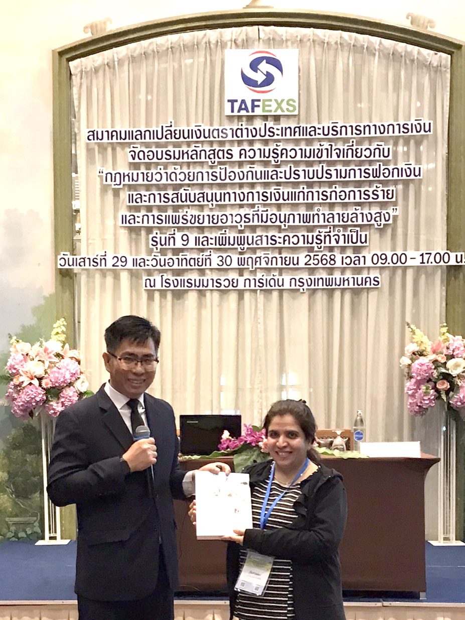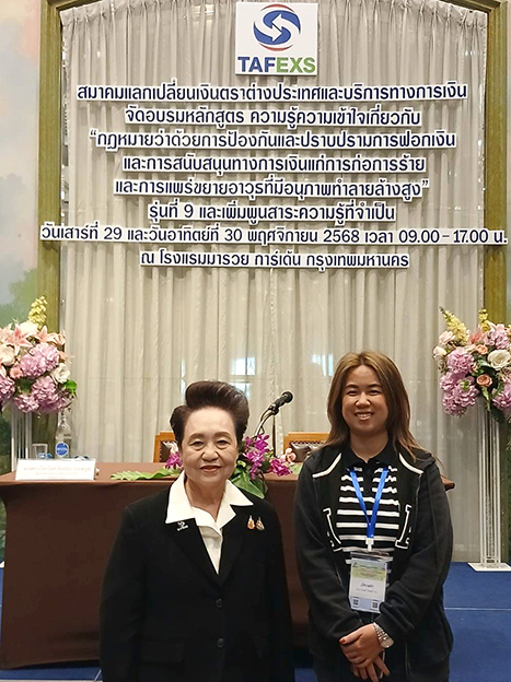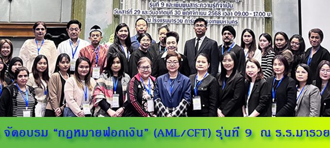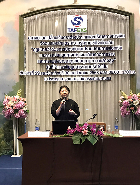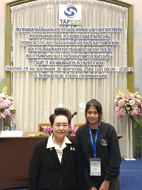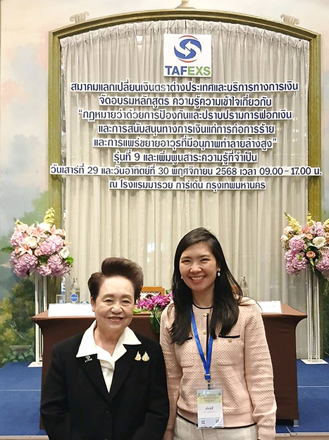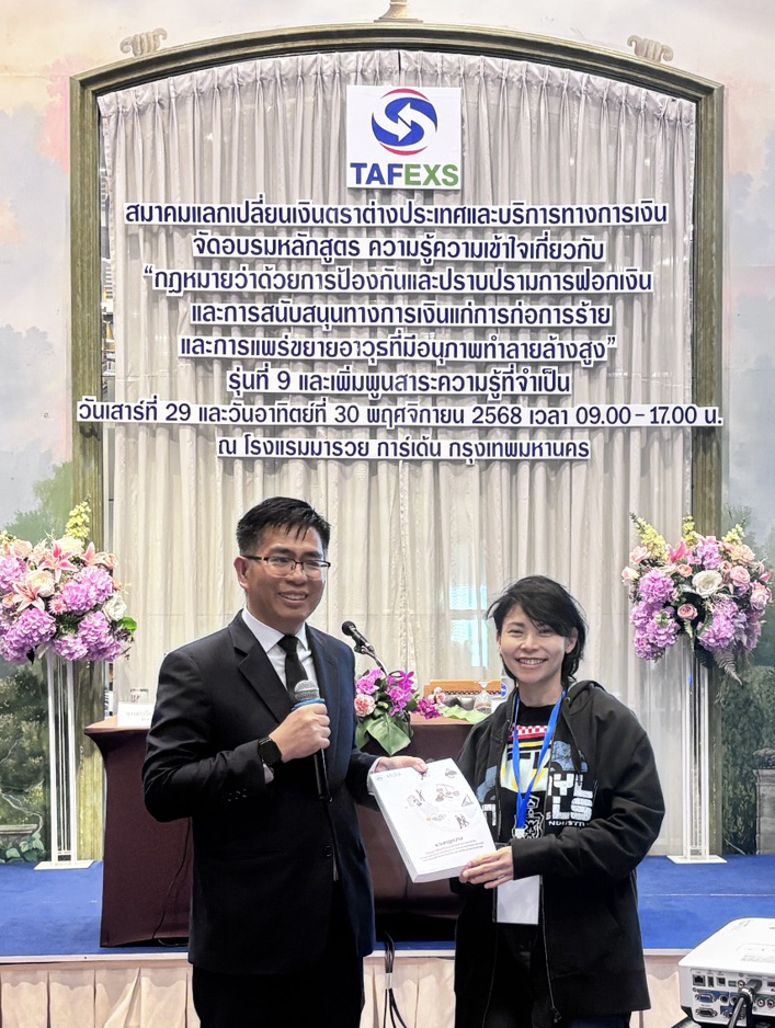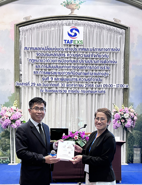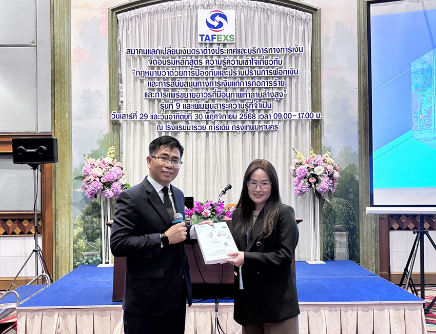 สมาคมแลกเปลี่ยนเงินตราต่างประเทศและบริการทางการเงินจัดอบรมหลักสูตร “ความรู้ความเข้าใจกฎหมายว่าด้วยการป้องกันและปราบปรามการฟอกเงินและการสนับสนุนทางการเงินแก่การก่อการร้ายและการแพร่ขยายอาวุธที่มีอานุภาพทำลายล้างสูง (AML/CFT) และเพิ่มสาระความรู้ที่จำเป็น” รุ่นที่ 9 ซึ่งเป็นหลักสูตรที่ได้รับรองจากสำนักงาน ปปง. โดยมี นายอภิชัย สุสมาวัฒนะกุล อุปนายกสมาคมฯ ให้เกียรติเป็นประธานเปิดการอบรมฯ เมื่อวันเสาร์ที่ 29 พฤศจิกายน 2568 และนายกสมาคมฯ นางสาวชนาพร พูนทรัพย์หิรัญ ให้เกียรติเป็นประธานปิดการอบรม เมื่อวันอาทิตย์ที่ 30 พฤศจิกายน 2568