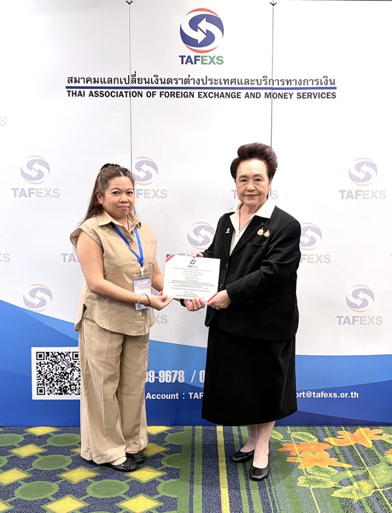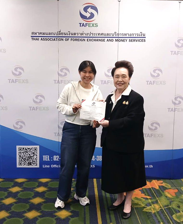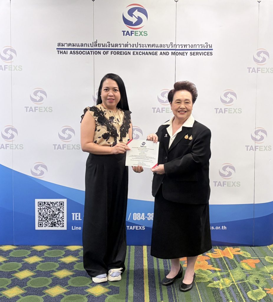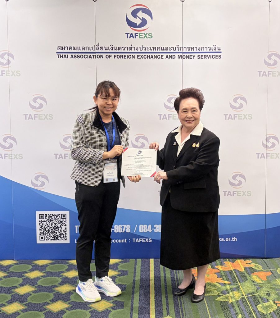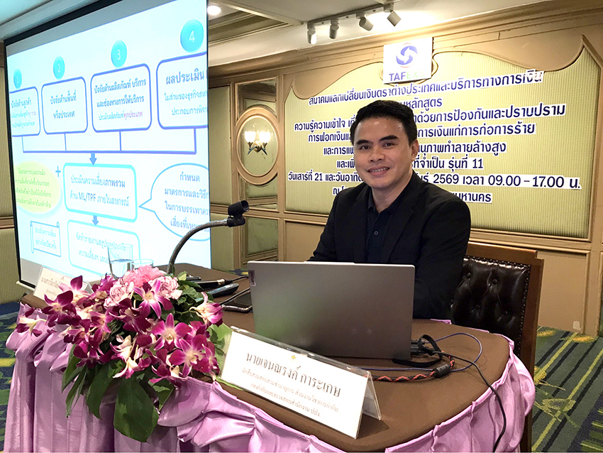 นางสาวชนาพร พูนทรัพย์หิรัญ นายกสมาคมแลกเปลี่ยนเงินตราประเทศและบริการทางการเงิน (TAFEXS) เป็นประธานในการเปิดการอบรมหลักสูตร “กฎหมายการป้องกันการฟอกเงิน (AML/CFT) และเพิ่มพูนความรู้ สำหรับผู้มีหน้าที่รายงานตามกฎหมายวjาด้วยการป้องกันและปราบปรามการฟอกเงิน ในปฏิบัติหน้าที่อย่างมืออาชีพ รุ่นที่ 11 เมื่อวันเสาร์ที่ 21 และอาทิตย์ที่ 22 กุมภาพันธ์ 2569 ณ โรงแรม มารวย การ์เด้นท์ กรุงเทพฯ