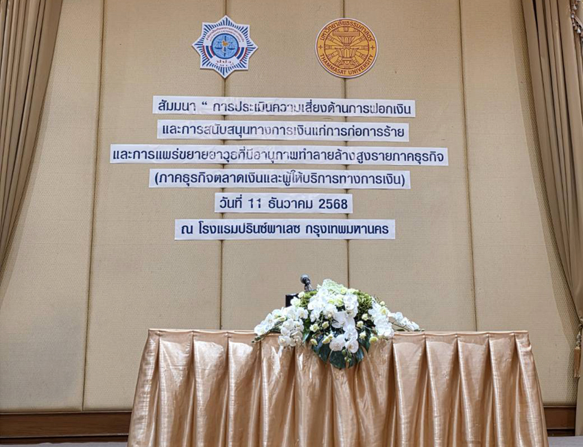 นางสาวชนาพร พูนทรัพย์หิรัญ นายกสมาคมฯ พร้อมด้วย นายธีรภัทร รติธรรมกุล เลขาธิการสมาคมฯ เป็นตัวแทน สมาคมแลกเปลี่ยนเงินตราต่างประเทศและบริการทางการเงิน เข้าร่วมร่วมสัมมนา “การประเมินความเสี่ยงด้านการฟอกเงินฯ” โดย สำนักงาน ปปง. และ สถาบันวิจัยให้คำปรึกษาแห่งมหาวิทยาลัยธรรมศาสตร์ (สว.มธ.) โดย สว.มธ. จัดประชุมกลุ่มย่อย ครั้งที่ 1 เพื่อนำเสนอรูปแบบวิธีการประเมินความเสี่ยงรายภาคธุรกิจ พรัอมทั้งรับฟังความคิดเห็นจากผู้แทนหน่วยงานที่เกี่ยวข้อง ในภาคธุรกิจตลาดเงิน และภาคธุรกิจผู้ให้บริการทางการเงิน เมื่อวันที่ 11 ธันวาคม 2568. ณ ห้องปรินซ์บอลรูม 1 ชั้น 11 อาคาร 1 โรงแรมปรินซ์ พาเลซ กรุงเทพฯ